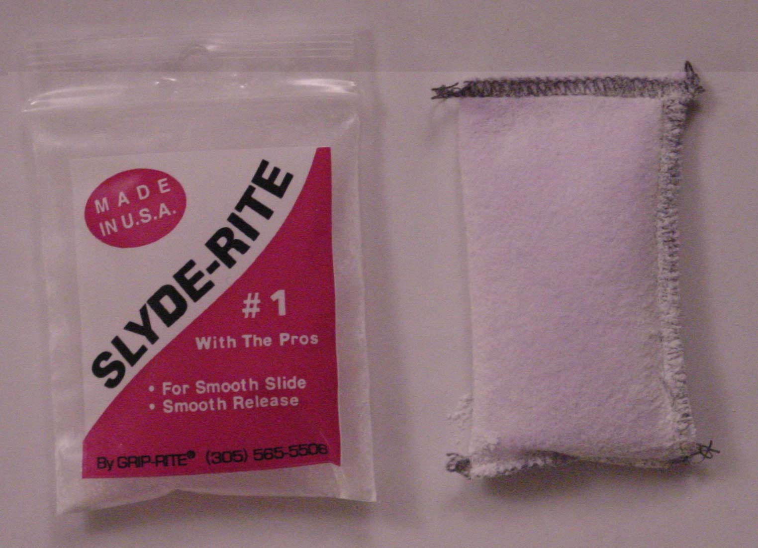 In short, a superior dry dubricant in about everyway possible. It works better, stays to the hands better, and doesn't smell. The only real downsides are cost (since baby powder is less expensive) and availability (billiard supply shops or the Large Sound online store). So what is a Slyde-Rite exactly? It's a porous cloth pouch with a pinkish white powder inside (not sure what the powder is). Just rub your hands around the bag and it despenses the powder with (at least in my experience) less scatter than with baby powder in a shaker. The little plastic bag it comes with is handy too, it's a resealable bag small enough to fit in the Ashbory gig bag pocket. I recommend this product, so much that I include a Slyde-Rite with every Ashbory sold by Large Sound along side the Ashbory User's Guide I wrote. Both seem like things that a new Ashbory should come with. Do you need a dry lubricant to play the Ashbory? Nope. There are advantages though, and for me the scent of baby powder was enough to keep me away for years. Now that I've found a superior powder that doesn't smell, I don't want to go back to using nothing. A Slyde-Rite acts like it was designed for this purpose. |